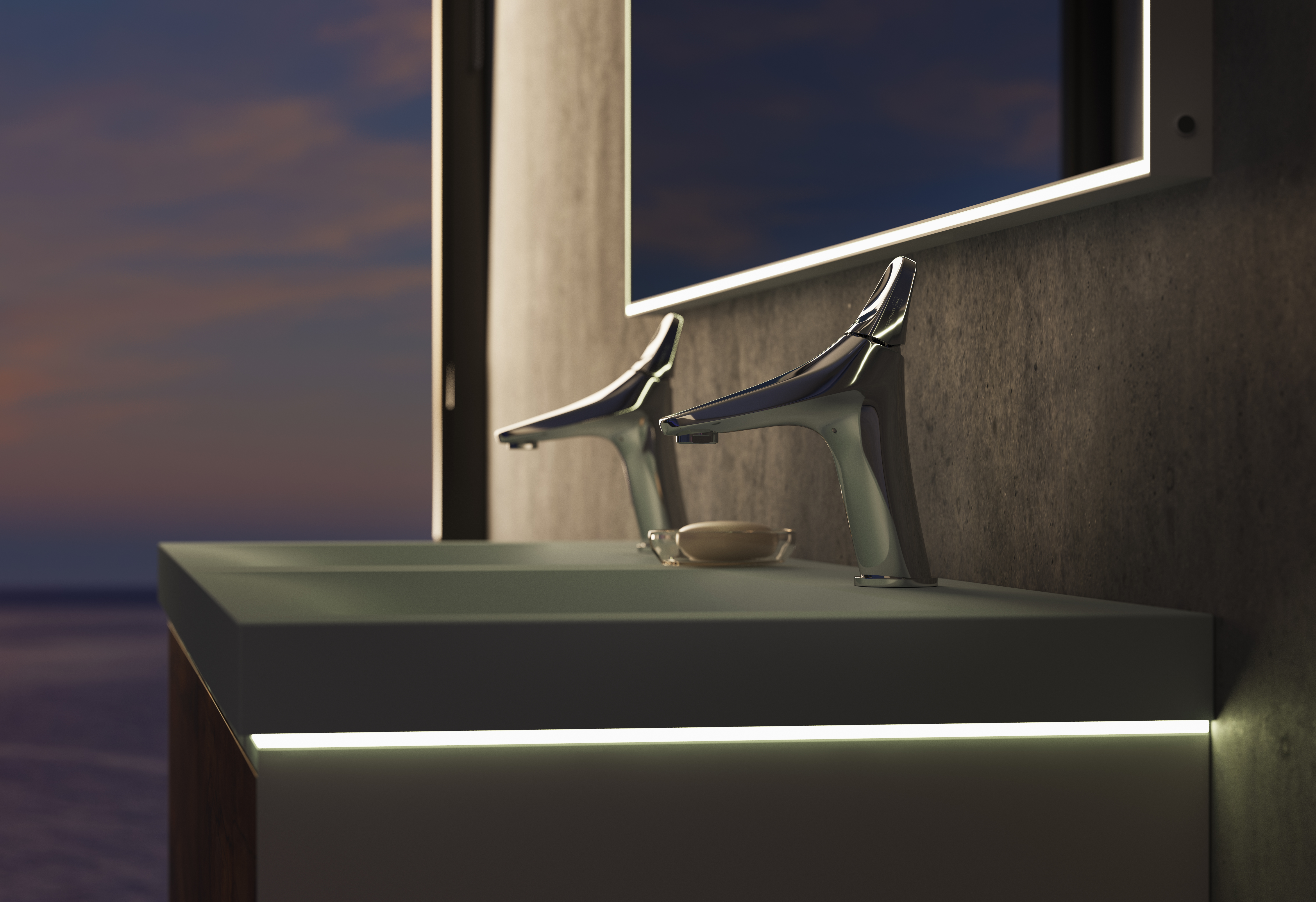 Además, la nueva colección de grifería Sense destaca por su diseño inspirado en la belleza de los fondos marinos para llevar la calma de las profundidades del océano al hogar. Los diseños de esta colección son asimétricos con curvas, un estilo que innova con el minimalismo en sus formas para invitar al usuario a disfrutar de una ducha con los cinco sentidos. Esta colección se presenta en el mercado con una amplia gama de productos como grifos, mamparas de ducha, puertas de cristal, espejos y muebles de baño.
