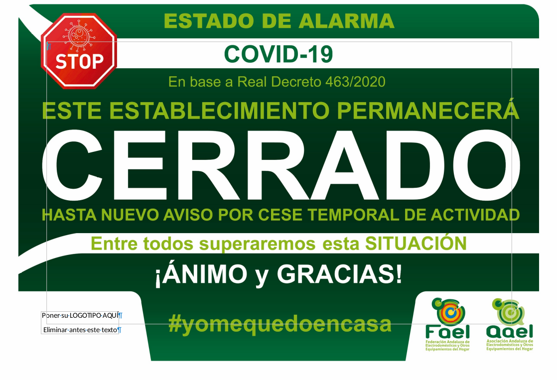 2. Cesar la Actividad. En este caso, la tienda cerraría durante el tiempo que dure el "estado de alarma" y no ofrecería ningún tipo de servicio/venta a distancia. Desde FAEL se facilita modelo de cartelería para aquellas tiendas que opten por esta opción.