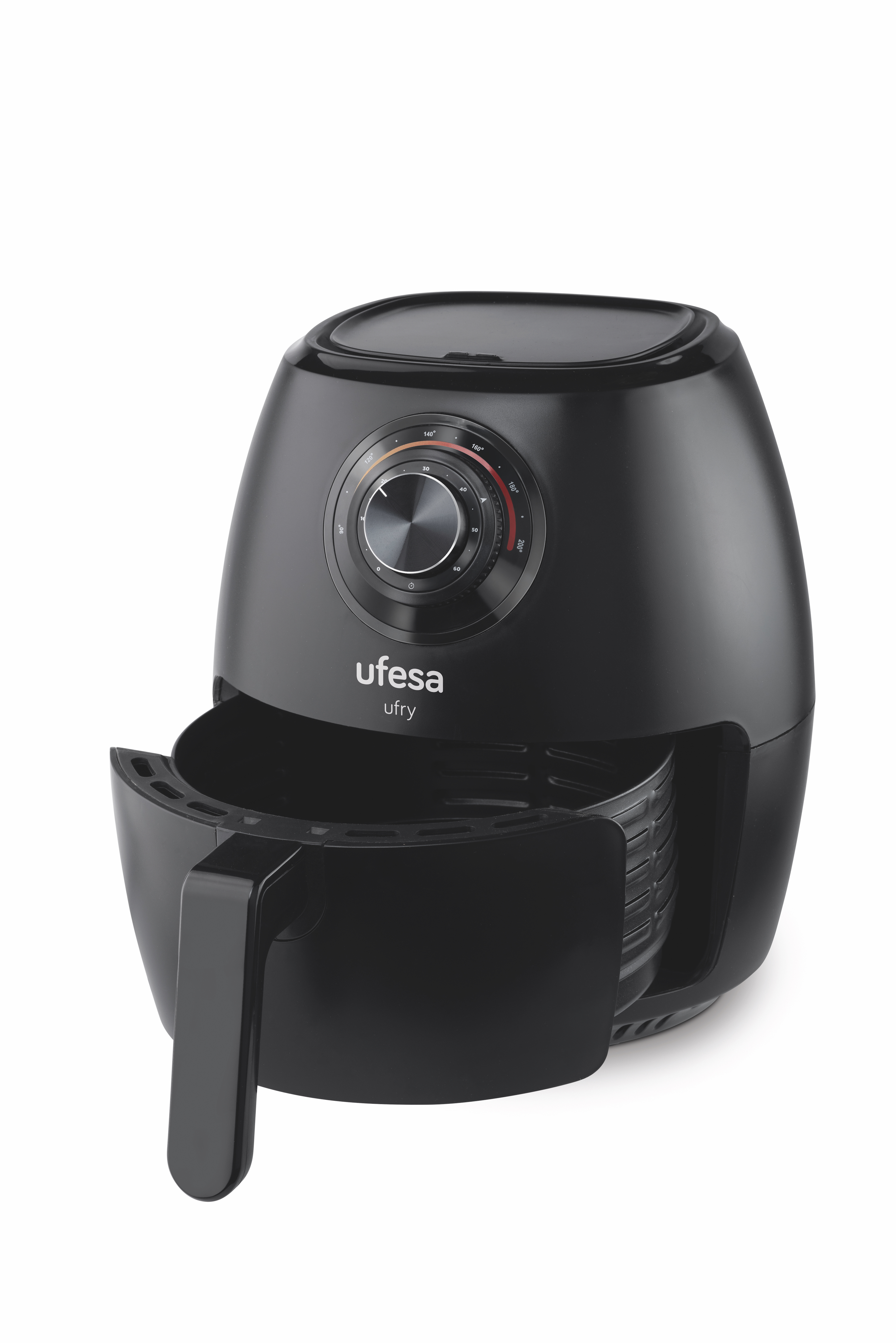 B&B Trends presenta con su marca Ufesa la nueva freidora de aire sin aceite AF3500 uFry, una alternativa más saludable con tecnología de circulación de aire a alta velocidad gracias a la cual los alimentos se van cocinando sin necesidad de aceites añadidos, reduciendo al mínimo la cantidad de grasa necesaria y logrando platos que tengan menos calorías y sean más saludables. Tiene una potencia de 1.300 W y capacidad de 3,5 litros, que permite cocinar platos con cantidades grandes.
