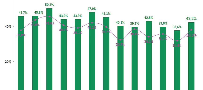 Esta misma tendencia se observa respecto a aquellos que creen que la situación permanecerá estable (34,4%), un 1,6 punto más respecto al mes anterior. Por su parte, desciende 3,9 puntos respecto al mes pasado el porcentaje de españoles que consideran que la situación empeorará (42,2% en diciembre frente al 46,1% en noviembre).