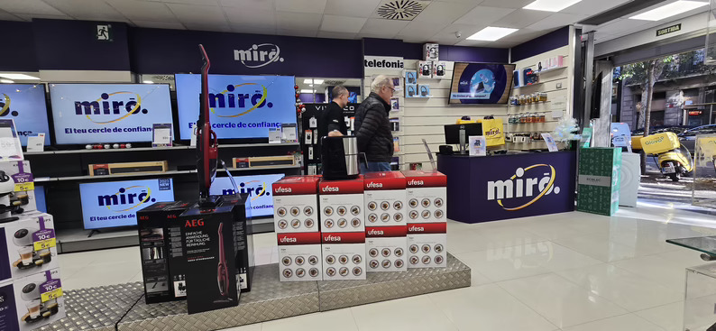 Electrodomèstics Miró inaugura una nueva tienda en el centro de Barcelona con un formato innovador y digital. Tal y como anunció Candelsa en la Feria Next realizada en el mes de octubre, la bandera Mirò suma un nuevo establecimiento en el corazón de Barcelona, concretamente en la Calle València, 327. Este nuevo espacio, de 300 m2, combina zona de exposición y almacén en un innovador formato de tienda, diseñado para ofrecer una experiencia de compra más cercana y accesible. Una tienda diseñada para el cliente de proximidad. Además, este punto de venta apuesta por el comercio de cercanía, integrándose en un barrio caracterizado por sus calles peatonales y su dinamismo comercial. El establecimiento presenta un diseño moderno y funcional que incluye: Exposición de pantallas exteriores; Zona de gama blanca y productos de temporada; Zona de Home Cinema; y una Exposición de productos de menaje y pequeño electrodoméstico.La apertura oficial fue el pasado viernes 29 de noviembre, dando inicio con una amplia oferta de productos y promociones especiales por el Black Friday. Además, está prevista una gran fiesta de inauguración durante la primera quincena del mes de enero, que ayude a afianzar la relación del comercio de proximidad dando calidez al barrio del Eixample de Barcelona. "Con esta apertura, desde Electrodomèstics Candelsa reforzamos el posicionamiento de la marca Miró en Barcelona, consolidándola como referente en electrodomésticos y tecnología. Esta nueva tienda es un homenaje a la tradición de Miró en la ciudad, recuperando el espíritu de cercanía que ya marcó su presencia histórica en el Mercat de la Concepció. Ahora, con un formato renovado y moderno, la marca busca conectar aún más con su público fiel y atraer nuevas generaciones. Una invitación a descubrir el nuevo Miró Electrodomèstics".