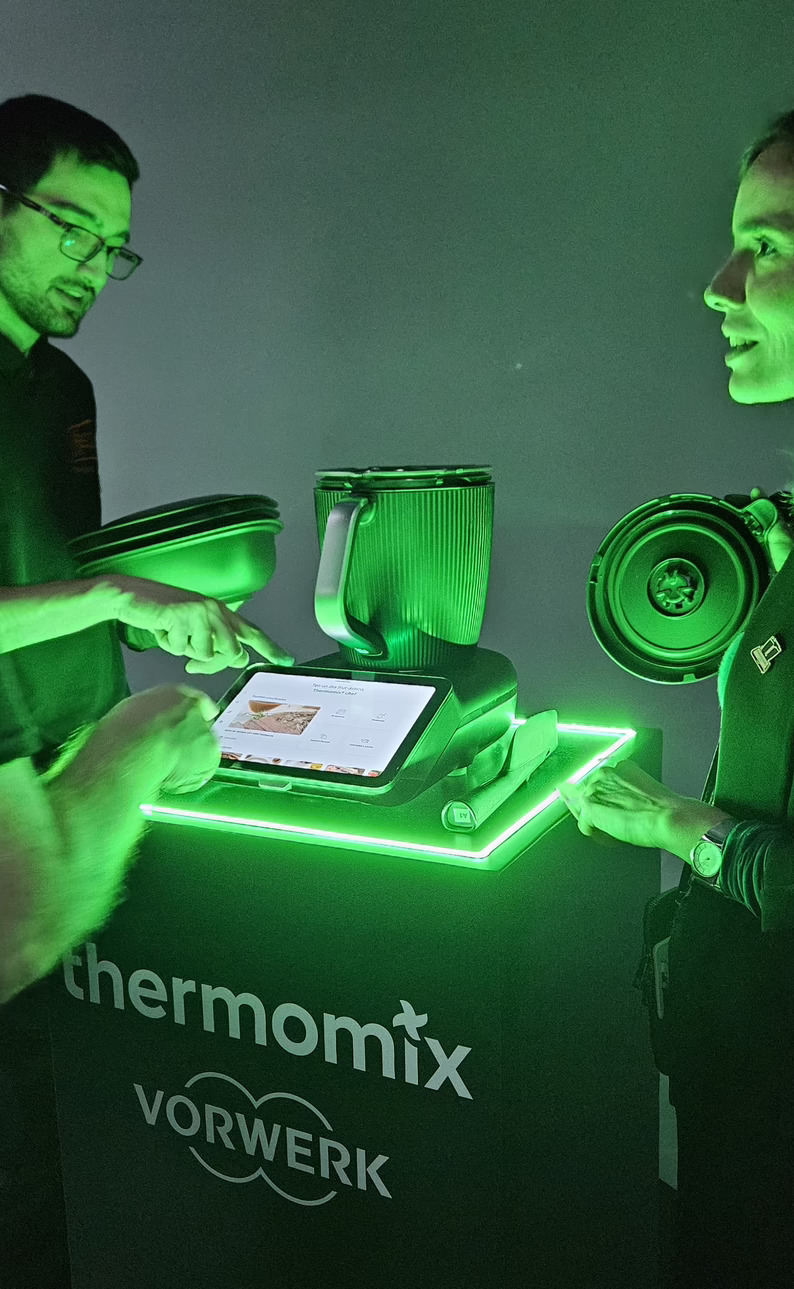 Vorwerk en esta ocasión ha acometido una novedosa campaña de lanzamiento para su último modelo del robot de cocina con nombre propio: Thermomix. En esta ocasión, el TM7 lleva calentando el mercado desde mediados de febrero, y será en el mes de mayo cuando las unidades reservadas en la preventa empiecen a llegar a las clientas, aunque inicialmente la previsión era que se entregasen a mediados de abril. De momento esta semana, los equipos están llegando a las delegaciones y a sus agentes comerciales, ya que se vende exclusivamente a través de venta directa. Además, en esta semana se está presentando el TM7 en Europa y asimismo la compañía ha realizado la puesta de largo en España, más concretamente en Madrid. En una próxima información detallaremos la estrategia actual de la empresa, del grupo, y sus objetivos y comportamiento en nuestro país.