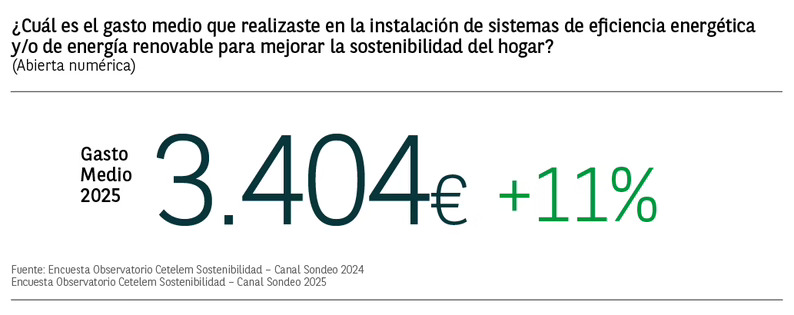 De manera global, el gasto medio en compras de segunda mano crece un 22% respecto a 2024 y el gasto medio en la instalación de sistemas de eficiencia energética en el hogar asciende a 3.404 €, un 11% más que en el año pasado. El 86% de los españoles tendría en cuenta la eficiencia energética a la hora de comprar su vivienday el 63% de los españoles considera importante o muy importante la movilidad sostenible. Asimismo, el 30% de los españoles afirma consumir menos ahora que antes, y de éstos, el 63% indica que es por su preocupación por el impacto medioambiental. En el caso de los jóvenes de entre 25 y 34 años, este porcentaje aumenta hasta el 70%.