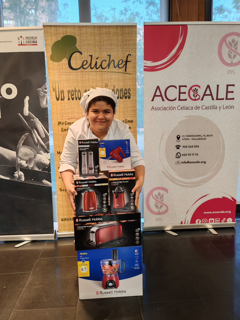 La Asociación Celíaca de Castilla y León (ACECALE) ha organizado la undécima edición de “Celichef – un reto entre fogones”, un concurso de recetas para sensibilizar a futuros profesionales de la cocina sobre la importancia de adaptar las recetas a las necesidades de todos aquellos que sufren de intolerancias y alergias alimenticias. Después de un proceso de formación en diferentes centros de formación en hostelería y turismo, se ha realizado como cierre de la campaña un concurso de cocina apta para celíac@s en la que 6 participantes debían realizar un menú completo con platos sin gluten. Un año más, Russell Hobbs ha apoyado la iniciativa y ha colaborado como patrocinador en esta nueva edición de Celichef cediendo productos para la elaboración de los menús de los participantes durante las semifinales como freidoras de aire Satisfry Air & Grill, batidoras de vaso, batidoras de mano y picadoras, y con un lote completo de productos para la ganadora en la final del 4 de junio.