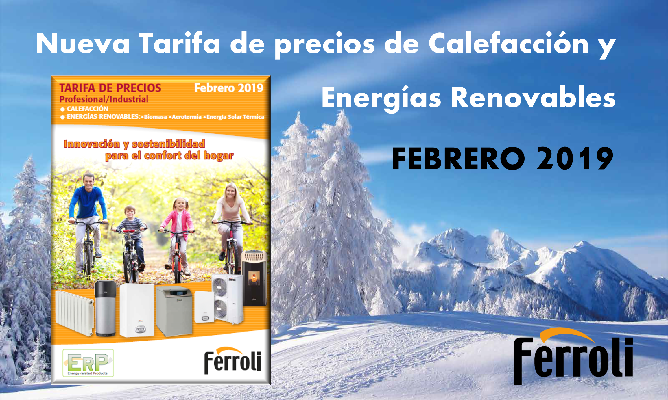 Ya está disponible la nueva Tarifa de Precios de Calefacción y Energías Renovables de Ferroli, cuyos precios entran en vigor el 1 de marzo de 2019.