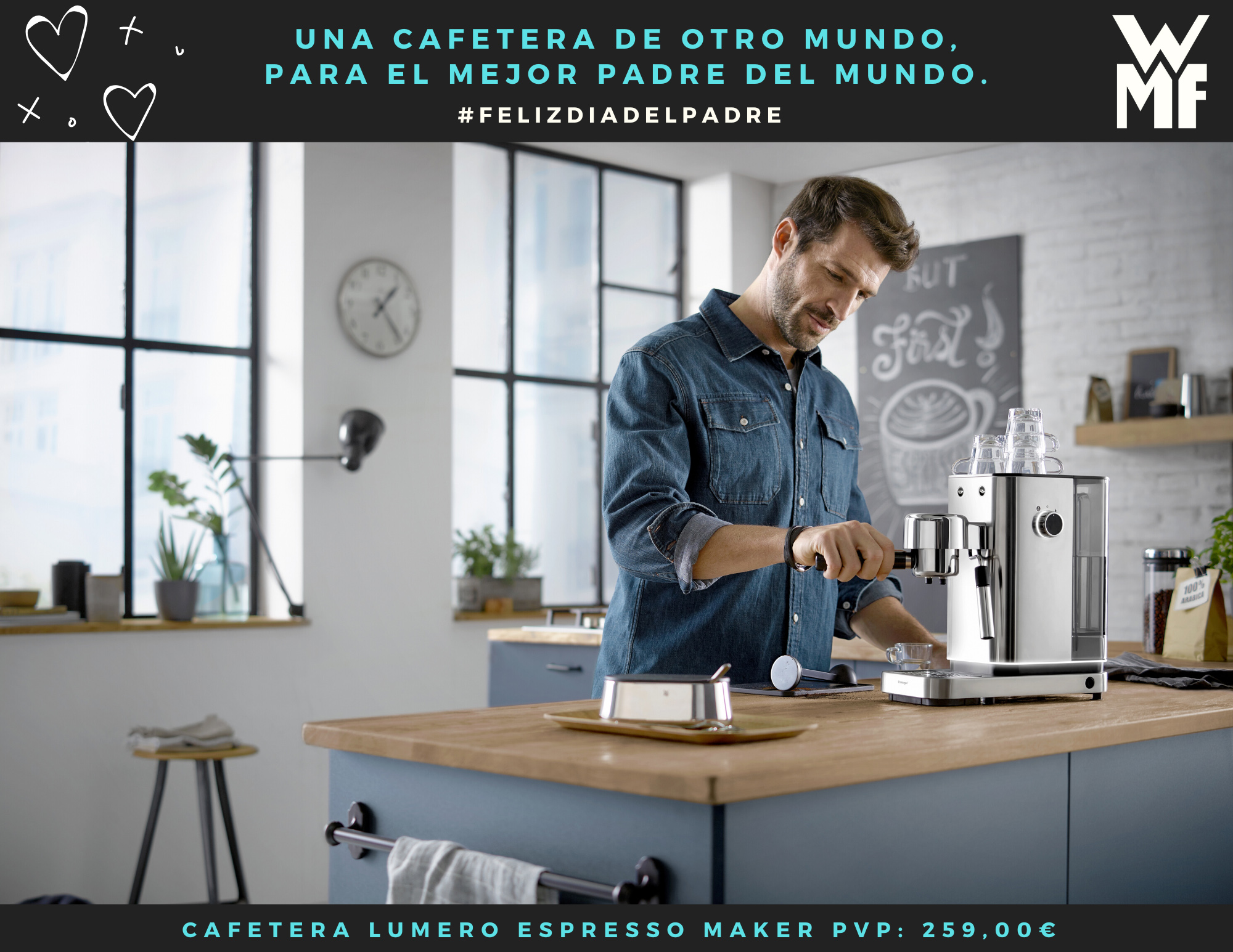 WMF, la marca de PAE de Groupe Seb presenta la nueva Cafetera Lumero Espresso Maker como regalo para el próximo Día del Padre. Con 15 bares de presión, consigue elaborar un café óptimo con todo el aroma, cuerpo y resultados profesionales. Incorpora una boquilla para espumar y calentar agua y leche perfecta para zurdos y para diestros. SCuenta con un motor de 1.400 W y sistema Thermoblock que se calienta en menos de 35 segundos. Posibilidad de preparar una o dos tazas simultáneamente. Funciona con café molido y monodosis ESE "Easy Serving Espresso" y tiene boquilla para calentar y espumar agua y leche; su boquilla se puede desmontar y limpiar con gran facilidad ya que es completamente extraíble, así como adaptable para zurdos y para diestros. Además incorpora Luz LED decorativa en el exterior de la máquina para ofrecer una luz ambiental y base regulable en altura para tazas de café espresso o cappuccino. Su PVP es de 259 €.