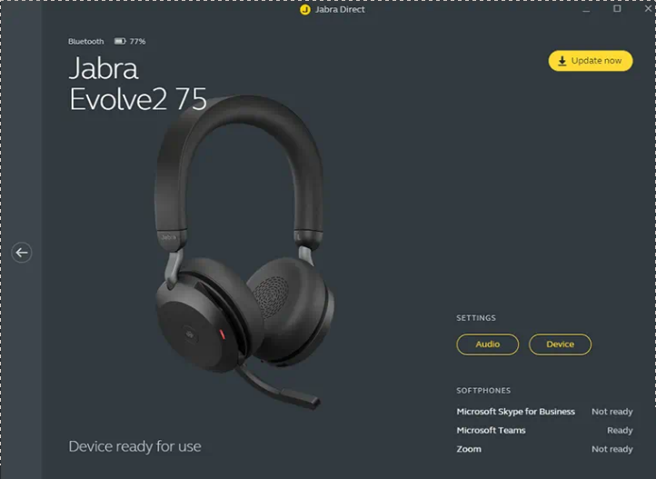 Jabra Evolve 75 es un auricular profesional de gama alta y precio medio, muy ligero y cómodo, que ofrece 16h de batería, una base de carga, con Busy Light en el lateral, y una cancelación de ruido muy alta tanto en el micrófono, como cancelación para el usuario, que consigue aislarse en entornos ruidosos. Además, tiene una cancelación de ruido activa, que aumenta el nivel de cancelación en momentos puntuales cuando el ruido supera la media del día.