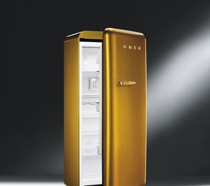 Smeg España, filial del grupo italiano homónimo, acaba de dar a conocer su última propuesta en frigoríficos. Se trata del nuevo 'FAB28RDG', un 'bombino' en el que la marca ha combinado la última tecnología de sus equipos con incrustaciones de la mano de Swarovski Elements. El nuevo 'bombino' se presenta en color dorado, color que lo reviste por completo hasta cubrir la empuñadura y las incrustaciones de cristales de Swarovski del logotipo.