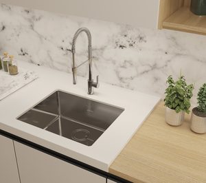 Según señala la marca, los fregaderos Smeg VSTR50 se complementan con los grifos Smeg MID2N o con los nuevos grifos Smeg MDF50 de estética años 50, con mango flexible, una rotación de 360º y acabados en colores verde agua, azul cielo, crema, inox, negro y blanco.