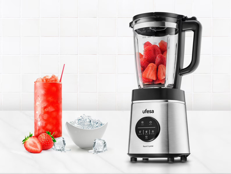 B&B Trends presenta con Ufesa las nuevas batidoras de vaso Mystic Topaz y Rock Crystal. La primera de ellas destaca por su gran capacidad de 2 litros, una jarra graduada de tritán que es ligera y resistente, y que se adapta perfectamente a todas las necesidades culinarias. Con 8 programas automáticos, desde leche y mantequilla hasta helado y puré, y 6 cuchillas de acero inoxidable diseñadas para picar hielo, esta batidora permite explorar nuevas dimensiones en la preparación de alimentos. Además, el ajuste manual de tiempo y velocidad, y la pantalla táctil intuitiva, hace que la personalización sea completa. Su diseño inteligente incluye un bloqueo de seguridad para una experiencia de uso sin preocupaciones, mientras que el recoge-cables facilita su almacenamiento.