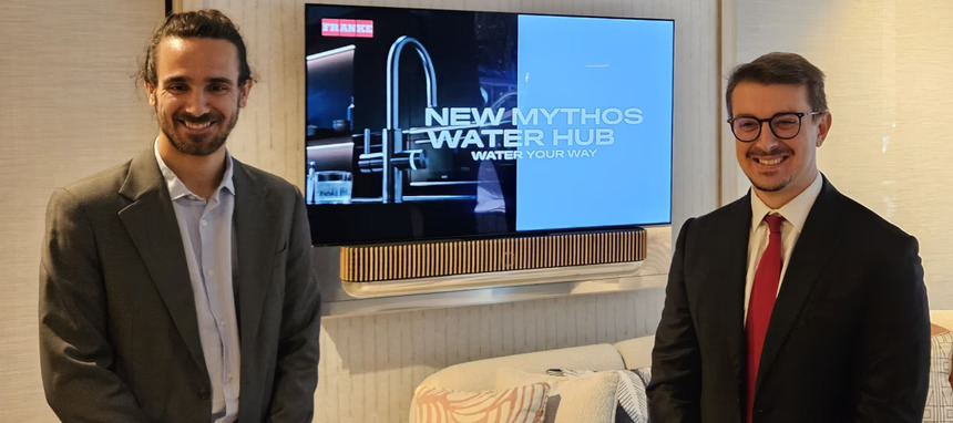 En el evento participaron Andrea Sica y Borja Vinanova, Trade Marketing Manager & Communication Specialist Iberia. En palabras de Sica: "Durante muchos años Franke se ha dedicado al mundo del acero inoxidable, fueron nuestros inicios y lideramos el segmento durante años, ahora hemos dado el paso de equipar cocinas completas, de tal modo que hoy somos una de las pocas empresas que puede ofrecer al consumidor vestir toda la cocina con una sola marca. Hoy presentamos Mythos Water Hub, una solución 6 en 1 con agua sanitaria caliente y fría, agua filtrada a temperatura ambiente, agua filtrada a 100 grados, agua con gas al 50% y agua con gas al 25%, y todo ello con un producto súper compacto bajo el fregadero, que libera sitio en el armario. Este grifo sale a la venta en septiembre en España, de momento en color acero inox y negro mate, y de cara a 2025, este grifo multifuncional que va a ser una tendencia, llegará en oro, cobre y antracita. Para tener una carta más completa. Con un precio para la serie Mythos de 3.000 €, y para Maris Water Hub de 1.650 € (es un 4 en 1,) lo hemos empezado a lanzar en marzo en UK (donde el 35% de los grifos que se venden son multifuncionales) y en Bélgica (50%), y los resultados son buenos, creemos que este lanzamiento en septiembre va a impulsar las ventas. Estamos aportando nuestro I+D en este producto. Y nos posicionamos frente a a competencia al mismo nivel, pero nuestra ventaja es el espacio que ocupa este equipamiento bajo la grifería, que es mucho menor".