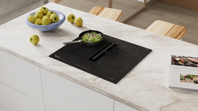 Las nuevas placas de inducción ControlTotal permiten tenerlo todo bajo control con el nuevo Control de temperatura del aceite, con visualización de la temperatura sobre el display, y el Control Placa-campana, con el que se pueden manejar distintas funciones de la campana a través de la placa o el móvil o permitir que la campana se regule automáticamente en función de la potencia de la placa.