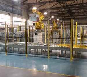 La cuarta línea, la que asume la mayor carga de trabajo en Bodegas Fundador, ha requerido de una solución innovadora que integra dos brazos que permiten realizar de manera alterna la colocación de las cajas. Se trata de una técnica denominada 'Dual Arm Robotic Palletizer' (DARP) que es novedosa en el ámbito del paletizado y que ha sido implantada previamente por Inser Robótica en aplicaciones de descuelgue o apilado de productos. La clave para que los dos robots puedan trabajar de forma simultánea es reducir al máximo los tiempos de interferencia y evitar posibles colisiones entre ambos brazos, capaces de mover cargas de alrededor de 165 kg. a una velocidad de hasta cinco metros por segundo. Para lograrlo, han combinado su experiencia con el software de programación offline Roboguide, de la marca de robots Fanuc.