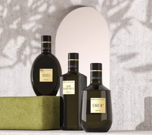 'Drop', 'Eolia' y 'Seed' son botellas de diseño escultural, inspiradas en el universo de la aceituna, desde el fruto hasta el hueso, así como en los recipientes tradicionales de barro y cerámica. Las formas orgánicas y sencillas son la expresión de un lenguaje visual puro e innovador, arraigado en los orígenes y pensado para un uso prémium.