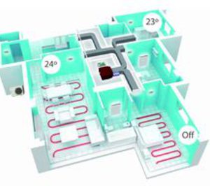 Airzone presenta su solución para Aerotermia, Innobus Pro32, 3ª generación de su línea Innobus. Este sistema integra la zonificación con las tecnologías en instalaciones aire-agua, mediante el control de fancoil individuales o fancoil de conductos zonificados así como suelos radiantes y refrescantes. La Central de Control de Producción de Airzone permite la integración y el control de los equipos de producción de los principales fabricantes de sistemas de Aerotermia Daikin Altherma, Mitsubishi EcoDan, LG ThermaV, Panasonic Aquarea, Samsung EHS, etc. La nueva placa de control de elementos radiantes permite la zonificación de instalaciones radiantes permitiendo su control tanto para frío como para calor. Otra novedad son los termostatos por radio-frecuencia para el control de fancoil individuales, fancoil de conductos zonificados y elementos radiantes.