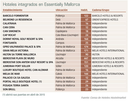 La Federación Empresarial Hotelera de Mallorca - Fehm ha presentado la agrupación Essentially Mallorca que, conjuntamente con representantes de otros segmentos de actividad, promoverá la isla como destino para el turismo de lujo en los mercados nacional e internacional. Inicialmente, se han unido a esta iniciativa un total de 20 establecimientos mallorquines (ver cuadro adjunto), entre los que se cuentan desde pequeños hoteles-boutique independientes hasta complejos de cadenas como Barceló, Hilton, Meliá, Orient-Express, Jumeirah e Iberostar. Asimismo, Essentially Mallorca incorpora zonas comerciales, restaurantes de gama alta y el recientemente inaugurado puerto deportivo 'Port Adriano', además de otras actividades relacionadas con el lujo y el turismo.