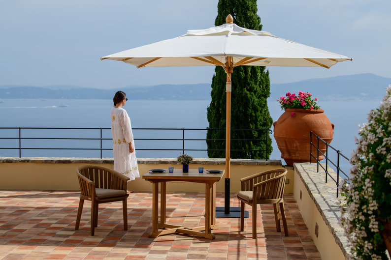 Entre ellas, destaca la sombrilla Roma -imagen principal-, que se ha convertido en el emblema de Tectona, "reflejando la combinación perfecta entre tradición artesanal y excelencia en el diseño. Cada pieza es el resultado de un meticuloso proceso de fabricación que garantiza una calidad excepcional y una estética inconfundible". Está disponible en 12 tallas y 12 colores y el mástil y las varillas están fabricados en madera de pino Douglas. Además,"las corolas están cosidas a mano, utilizando lona de algodón crudo impermeabilizada o tejido Sunbrella en los modelos de colores. Más allá de su diseño, la sombrilla Roma se distingue por la posibilidad de personalización que ofrece Tectona. Cada cliente puede elegir entre una amplia gama de colores y tamaños, adaptando la sombrilla a sus necesidades y preferencias. Puede elegir el tejido a su gusto, optar por un tejido doble, consiguiendo un color abajo y otro arriba".