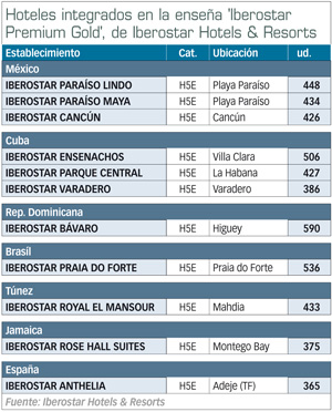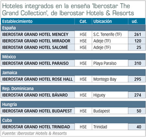 La mallorquina Iberostar Hotels & Resorts ha segmentado su oferta hotelera con la incorporación de dos nuevas enseñas 'Iberostar Premium' e 'Iberostar Premium Gold', que se suman a la marca básica 'Iberostar' y la de más alta gama 'Iberostar The Grand Collection', que ya venía operando en las últimas temporadas. Con esta reestructuración, 'Iberostar' incorpora 33 hoteles y 13.000 unidades alojativas, caracterizados por su buena relación calidad-precio, entre ellos 15 (4.000 ud) de sus establecimientos españoles. Forma, junto con 'Iberostar Premium', el grueso de la oferta del grupo. Esta última, con 36 hoteles (10.000 ud), está orientada a hoteles de 4E y 5E destinados a adultos, siendo la que cuenta con mayor presencia de establecimientos españoles (15-4.800 ud).