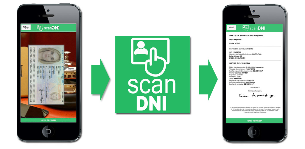 ScanDNI (http://www.scnadni.com) es una aplicación para móviles y tablets que utiliza la más reciente tecnología de reconocimiento óptico de caracteres, para generar instantáneamente el Parte de Viajeros debidamente firmado, en formato digital, con el consiguiente ahorro de tiempo, papel y tinta. El dispositivo móvil se convierte un potente escáner, libre de cables y sin necesidad de un ordenador de sobremesa, simplificando el check-in a límites impensables hasta ahora.