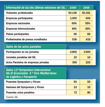 En cualquier caso, esta reducción tampoco ha tenido efectos negativos en el número de visitantes profesionales, ya que éstos se han situado en 50.321, superando, como se preveía, a los 50.136 visitantes de 2008. Estos asistentes pudieron visitar, además de los stands de los expositores; las jornadas de Symposim SIL y el Forum Mediterráneo de Logística y Transporte, aparte de tres nuevas jornadas técnicas que han tenido lugar este 2009 sobre Consumo; Sistemas de Información para Logística; y Puerto y Aeropuerto, motores de actividad, organizada esta última por Barcelona Centre Logístic Catalunya (BCL).