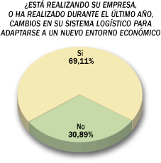 El nuevo entorno ecónomico que surgirá a la salida de la crisis va a obligar a las empresas a una exigente adaptación, siendo su sistema de gestión de la logística y el transporte una de las primeras áreas de actividad donde se lleve a cabo esta transformación. Así, según una reciente encuesta realizada por Alimarket, hasta un 69,1% de las empresas españolas relacionadas con el gran consumo -fabricación, distribución, hostelería, envases, etc.-, más de dos de cada tres, está realizando cambios en su sistema logístico para adecuarse a las nuevas circunstancias.