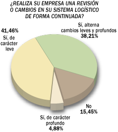 De hecho, para estos sectores, la adecuación y renovación de su cadena de suministro llega a ser una constante para mantener su competitividad, pues más de un 84% revela que, en mayor o menor grado, realiza revisiones de su sistema logístico de forma continuada.