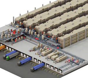 En el espacio de almacenaje belga, la compañía se ha decantado por implementar el sistema pallet shutle automático de Mecalux. La estructura de la nave tendrá cuatro pasillos con dos bloques de estanterías a cada lado y estará conectada con la zona productiva mediante un circuito de transportadores de más de 100 m de longitud. Doce lanzaderas (una en cada nivel de almacenaje) trasladarán la mercancía hasta el canal correspondiente y, una vez allí, el carro motorizado desplazará automáticamente los palés hasta su ubicación. Este sistema de almacenamiento por compactación es "uno de los más eficientes del mercado ya que garantiza un flujo muy elevado de entradas y salidas de mercancía", detallan desde Mecalux.