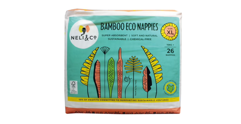 En Kenia, los pañales ecológicos de bambú Neli & Co (5). se comercializan como un producto “suave y natural”, sostenible y sin aditivos químicos. Incorporan una lámina de bambú biodegradable superior y posterior, son hipoalergénicos y antibacterianos, para reducir la irritación.