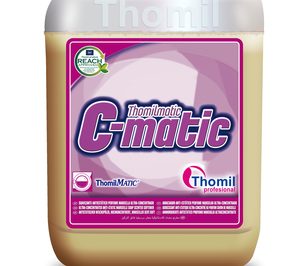 Thomil amplía la gama de suavizantes 'C-Matic' con una nueva garrafa de 10 litros. Este suavizante ultra concentrado con perfume jabón marsella elimina fácilmente la carga estática de los textiles. Su elevado poder de concentración en materia activa (+15%), le convierten en rentable por sus bajas dosis de utilización. Además acorta tiempos, velocidades y temperaturas de secado y planchado, lo que permite ahorro de energía.
