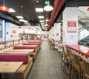 Five Guys Spain estrenará el próximo mes de julio el segundo restaurante español de la marca , que se convertirá en la primera unidad instalada en un centro comercial. Esta nueva unidad ocupará un local de 498 m2 que ya se está acondicionando en el C.C. 'Parquesur', de Leganés (Madrid), en una zona desplazada de la ubicación que ocupa el grueso de la restauración del complejo y más próximo al área de moda. Contará con capacidad para atender a 178 comensales y su plantilla podría estar próxima a los 50 trabajadores. Las hamburgueserías Five Guys están presentes en España desde el pasado mes de octubre, con la inauguración de un restaurante en la Gran Vía de Madrid . Como se recordará, la operativa está en manos de una joint-venture entre la norteamericana Five Guys y el empresario británico Charles Dunstone, al igual que en Francia y Reino Unido. Tal como comentaba el responsable del grupo en nuestro país, Daniel Agromayor, en la entrevista concedida a Alimarket Restauración , la enseña prevé expandirse por todo el mercado español si bien no cuenta con un plan específico de aperturas. Recientemente, Sociedad General Inmobiliaria de España - LSGIE anunciaba la apertura de un restaurante 'Five Guys' en el C.C. 'Plaza Río 2' , que la promotora inaugurará en Madrid el próximo mes de octubre, si bien desde la cadena no se ha confirmado aún de forma definitiva este acuerdo.