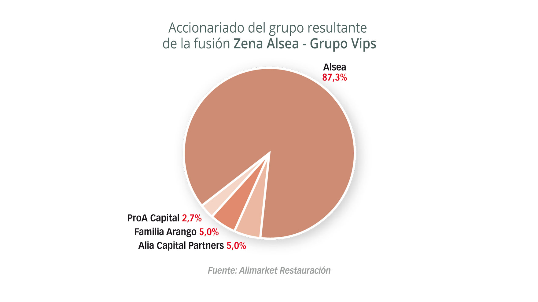 Alsea (Alsea S.A.B. de C.V. cotizada en la bolsa de México) y los accionistas de Sigla (30% ProA Capital), sociedad cabecera de Grupo Vips, han llegado a un acuerdo por el cual Food Service Project, sociedad participada al 100% por Alsea y propietaria de la mayoría de Grupo Zena en España desde el año 2014, adquirirá el 100% de Sigla. La valoración del negocio de Grupo Vips, se estima en 500 M€ después de deuda.