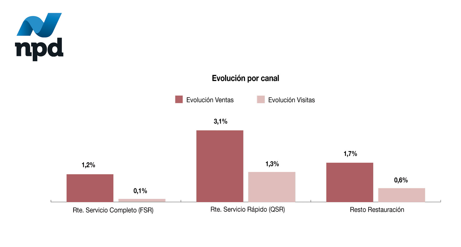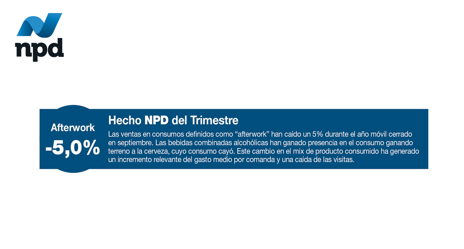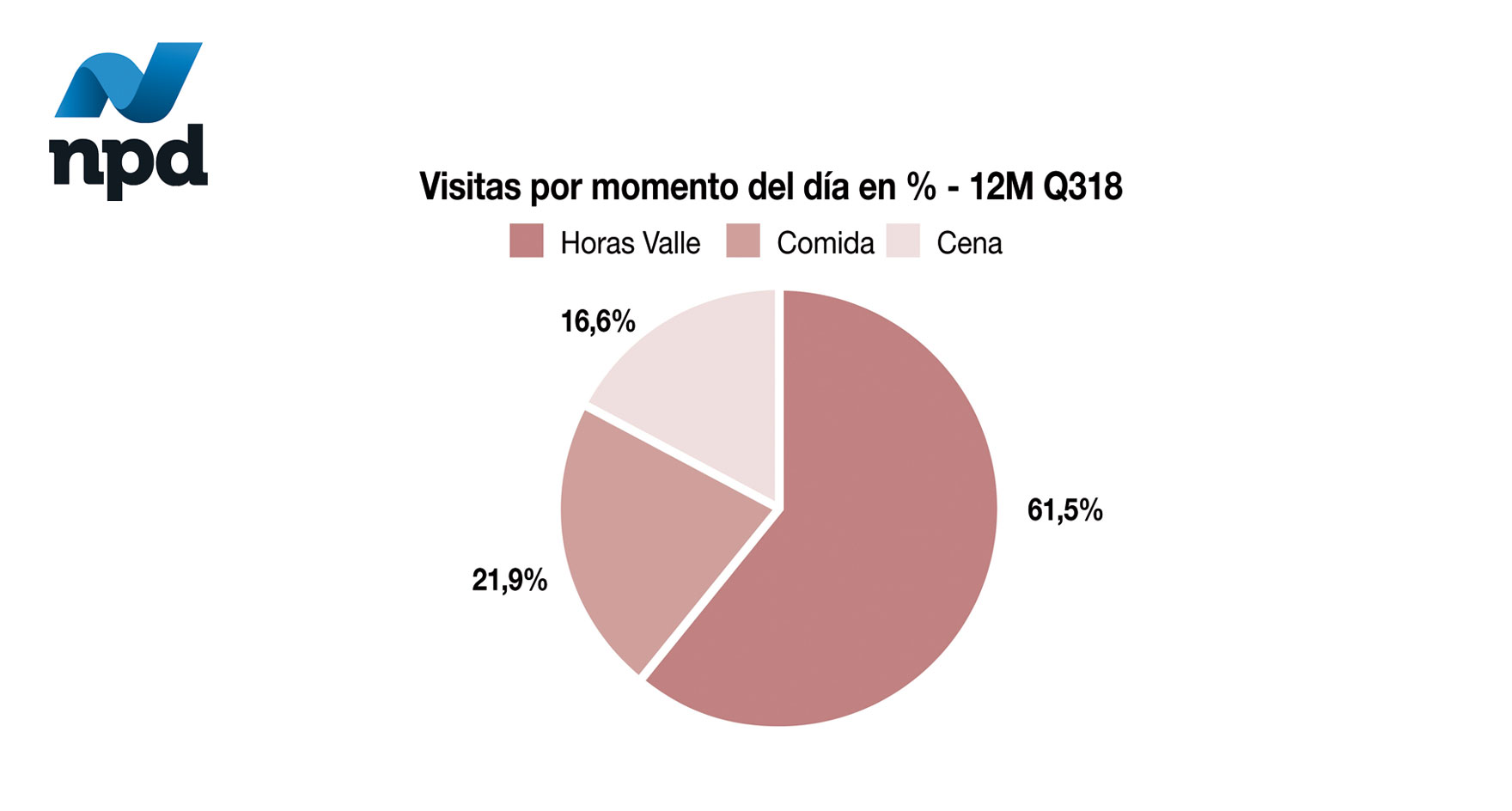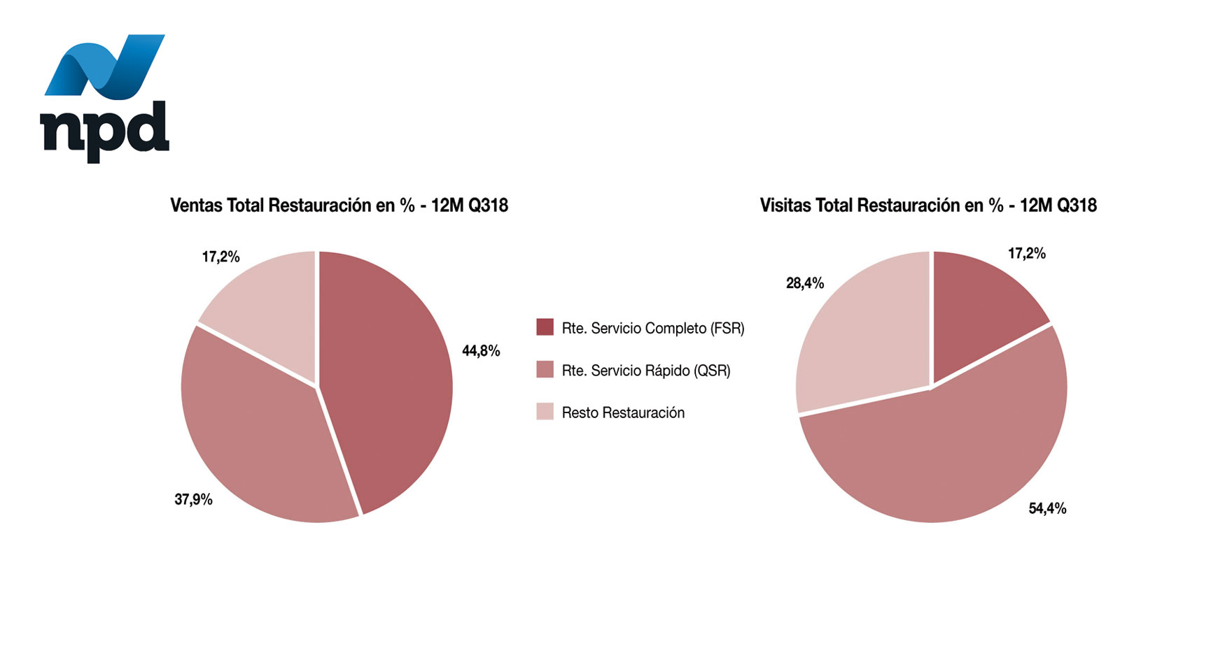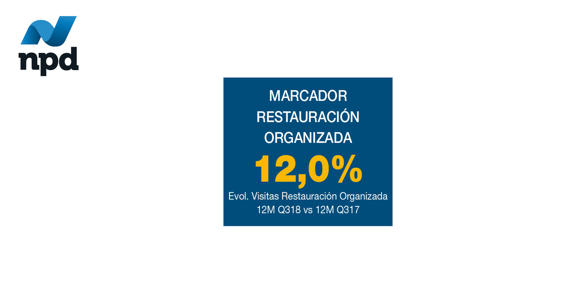 Los grupos y cadenas de restauración, es decir, la parte organizada del sector de hostelería, continúan creciendo a un ritmo muy superior al del conjunto del mercado. Así, según los últimos datos del Barómetro NPD, correspondiente a los 12 meses en el tercer trimestre de 2018 y elaborado en exclusiva para Alimarket, se constata que las visitas a los locales de la restauración organizada en España crecieron un 12% respecto al mismo periodo de 2017. En cambio, el total de la restauración, incluidos los establecimientos independientes, continuó ralentizando su ritmo de desarrollo. De este modo, la evolución de las ventas globales quedó limitada en ese cómputo anual al 2%, siendo superior en el segmento de servicio rápido (+3,1%) que el de servicio completo (+1,2%). Por otra parte, NPD destaca la fuerte caída de los consumos definidos como "afterwork" durante el año móvil cerrado en septiembre, si bien con un trasvase de la cerveza a las bebidas combinadas alcohólicas.