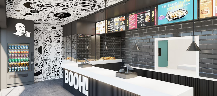 Por el momento, Booh! cuenta con dos complejos en Málaga y Madrid. Este último fue inaugurado a finales de 2022 y desde el mismo ya operan marcas como 'Vicio', 'Mahalo Poké' o 'The Black Turtle'. Los centros Booh! ofrecen espacio de alquiler de cocinas y una gestión de los pedidos de comida a domicilio gracias a un software de delivery y a la comunicación constante entre cocinas, traffic manager y repartidores. Asimismo, Booh! cuenta con repartidores propios, trabaja con su propia app de pedidos y las diferentes apps de comida a domicilio, como Uber Eats, Just Eat y Glovo, además de ofrecer servicio de pedidos telefónicos y take away.