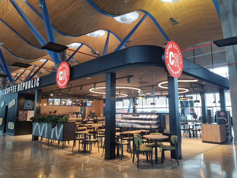 Ibersol Travel España, división de restauración en ruta del grupo luso Ibersol, ha anunciado la apertura de su primer ‘Coffee Republic’ en Madrid. El espacio, de 150 m2 de superficie, se sitúa en el aeropuerto Adolfo Suárez Madrid-Barajas, en concreto en la Zona Norte de la Terminal 4. El establecimiento luce la nueva imagen renovada de la enseña. Con esta apertura, Ibersol alcanza su séptima apertura del año en el aeropuerto madrileño, donde ya opera las marcas Pret a Manger, Café Pans, Central Café y Dehesa Santamaría.
