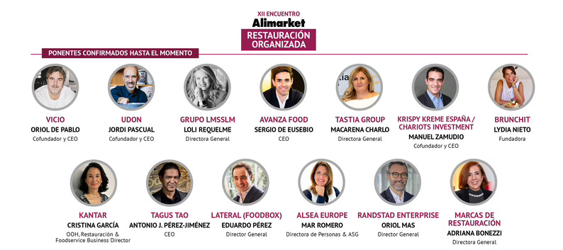 Para analizar este desafiante escenario, el XII Encuentro Alimarket Restauración Organizada está elaborando un programa con la presencia de profesionales de primera línea del sector que puedan presentar ejemplos de la construcción y el desarrollo de empresas y marcas trascendentes. En estos momentos está confirmada la presencia de Oriol de Pablo, cofundador y CEO de Vicio; Jordi Pascual, cofundador y director general de Udon Asian Food; Loli Requelme, directora general de Grupo La Mafia se sienta a La Mesa (Grupo LMssLM); Sergio de Eusebio, CEO de Avanza Food; Macarena Charlo, directora general de Tastia Group; Manuel Zamudio, cofundador y CEO de Chariots Investment, multifranquiciado de 'KFC' y 'Saona', y de Krispy Kreme España; Lydia Nieto, fundadora y Country Manager de Brunchit - Coffee & Kitchen; y Cristina García, OOH y Restauración & Foodservice Business Director de Kantar.