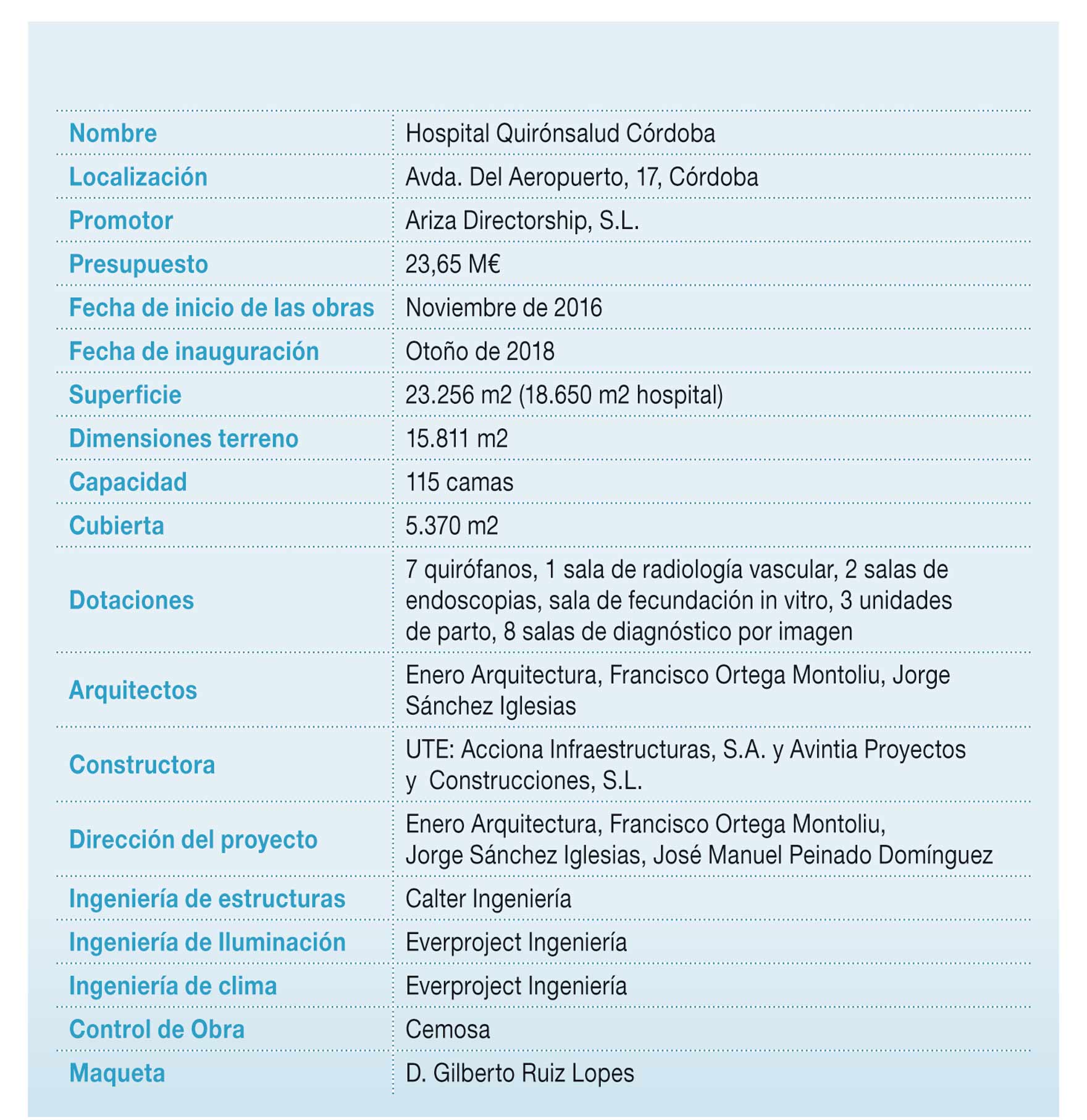 Quirónsalud encarga a finales de 2014 el diseño del ‘Nuevo Hospital Quirónsalud Córdoba’, dando respuesta a un programa de espacios y requerimientos técnicos y funcionales expresos, que ponen de manifiesto la evolución del sector en términos de demanda de servicios, conforme a características demográficas, patrones socioeconómicos y fórmulas de gestión que operan y contribuyen a la reflexión de nuevos estándares sanitarios, enmarcados en el emplazamiento donde se va a desarrollar la infraestructura.