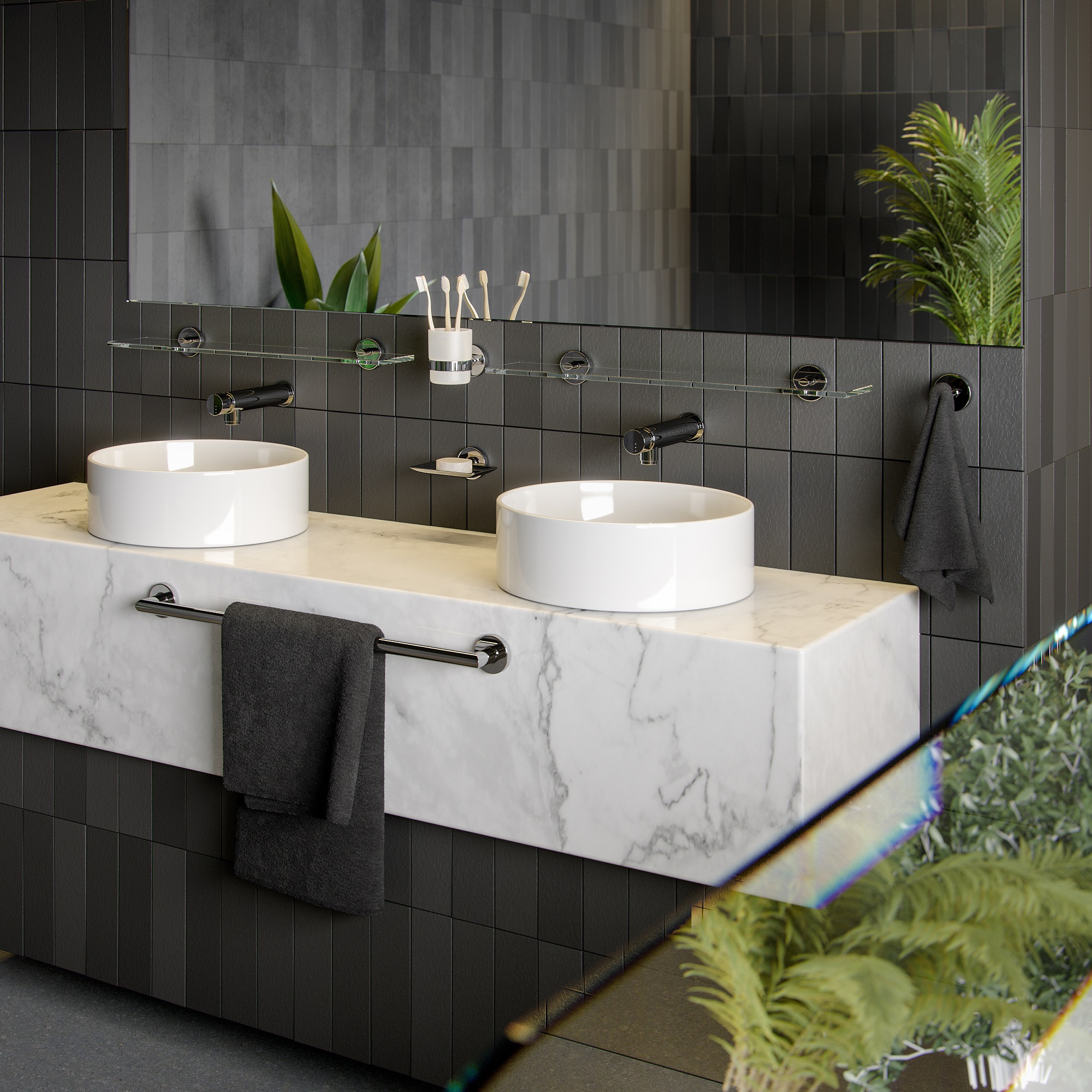 Esta capa protectora es transparente, desestimando otro tipo de colores que lo puedan diferenciar, ya que estos pueden ser problemáticos en baños de cierto nivel estético o de diseño. Si bien es transparente, su aplicación dota al acero inox satinado un acabado un tanto diferente, lo oscurece un poco, dándole un color tipo “titanio”. Con esta aplicación, la superficie tratada es capaz de eliminar progresivamente cualquier tipo de virus de manera permanente en el tiempo.