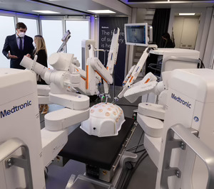 Pero, sin duda, en la dotación de Sanchinarro la innovación más destacable estaría en el ámbito de la robótica, su principal apuesta en el ámbito de la cirugía en los últimos años. Al modelo de robot Da Vinci, que el hospital viene utilizando en cirugía desde hace varios años, se sumaba el pasado julio el nuevo Hugo RAS System, un robot de última generación de la norteamericana Medtronic, que el grupo instalaba en el hospital Sanchinarro.